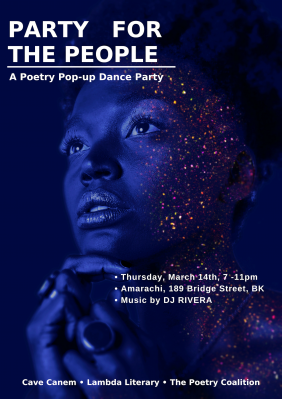 Cave Canem in Brooklyn, New York, and Lambda Literary in Los Angeles, California, co-hosted “Party for the People!” at Amarachi in Brooklyn, New York, on March 14, which featured pop-up readings on themes of democracy by Danez Smith, Omotara James, Victoria Newton Ford, and more, and music by DJ Rivera.