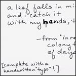 At the 2012 AWP Conference, poets who stopped by the Academy of American Poets's table were asked to deliver a piece of advice for younger poets. Below is a sample of these helpful gems of wisdom: