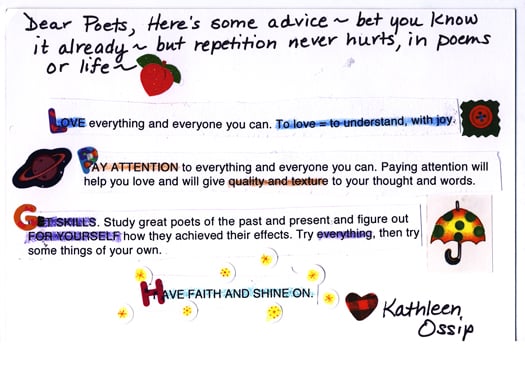 Dear Poets, Here's some advice ~ bet you know it already ~ but repetition never hurts, in poems or life ~